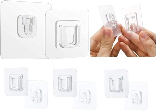 Spaceshoop - خطافات حائط لاصقة مزدوجة الجوانب - خطافات متينة لتعليق الإطارات، خطافات لاصقة شفافة متعددة الأغراض مقاومة للماء والزيت (10)