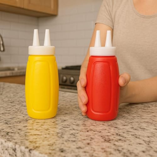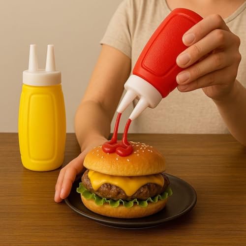 • DUAL DESIGN: Set includes two squeeze bottles in vibrant red and yellow colours with dual-tip dispensing caps for precise control