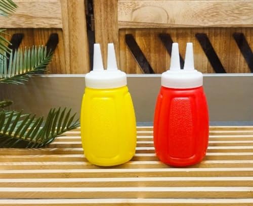 Generic - Generic Dual Plastic Condiment Dispenser Bottles, Red and Yellow, Flexible P5 Material, 2-Pack Set with Decorating Tips for Sauces, Ketchup, Mustard .db