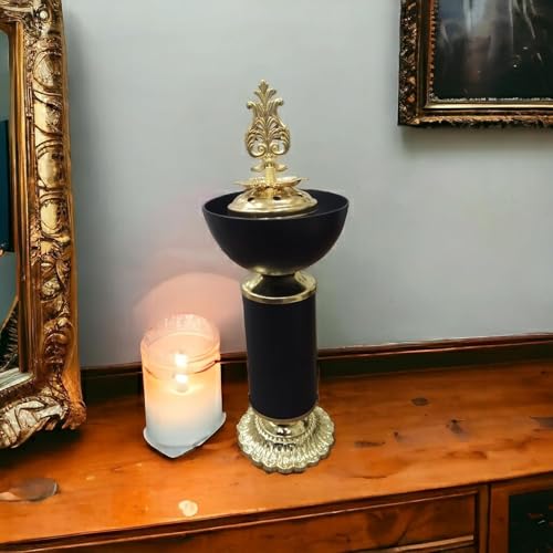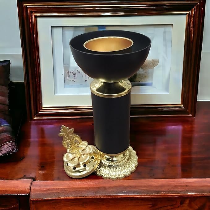 - ELEGANT DESIGN: Black metal incense burner featuring ornate gold-tone accents and traditional decorative finial top for sophisticated home decor