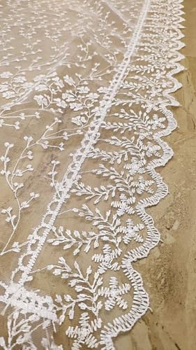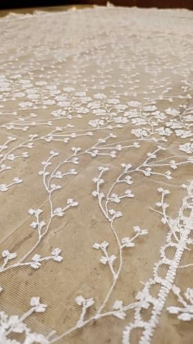- MATERIAL: Delicate white lace fabric featuring intricate floral embroidery patterns and detailed botanical designs