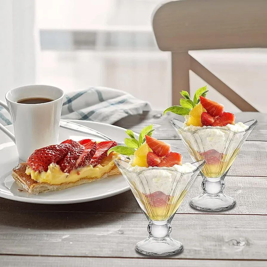 - ELEGANT DESIGN: Crystal clear glass martini-style sundae bowls feature a sophisticated stem design perfect for serving ice cream desserts in style
