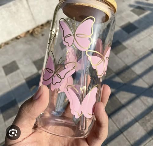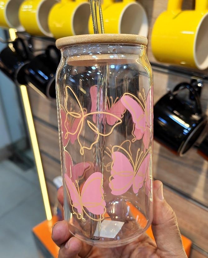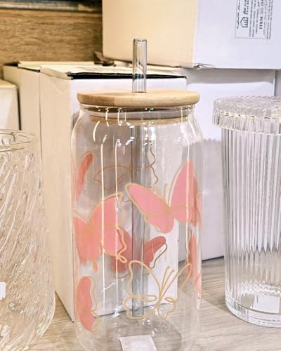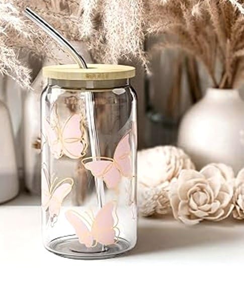 - PREMIUM DESIGN: Elegant mason jar-style glass mug featuring delicate butterfly patterns and a sophisticated wooden lid for a charming aesthetic appeal