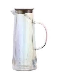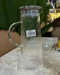 Generic - Generic Elegant Glass Pitcher with Ribbed Design, Clear, 1300ml Capacity, Metal Lid, Comfortable Handle for Cold Beverages.