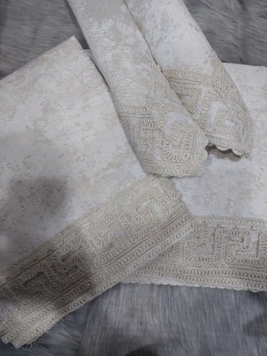 Generic - Generic Elegant Home Sofa and Chair Cover Set, Printed Linen with Greek Key Border, 10-Piece Set with Napkins, 200x80cm Large Sofa, 150x80cm Small Sofa (beige) .sr