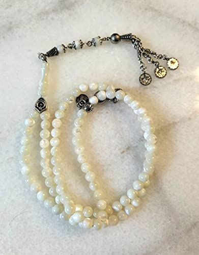 Generic - Generic Elegant Real Natural White Sea Shell Gemstone 99 Bead Classic Rosary Necklace for Adults (Religious) Unisex