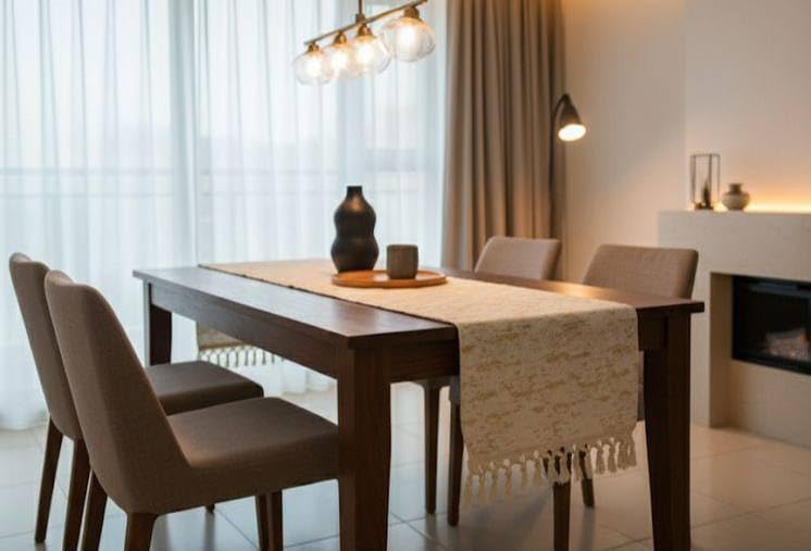 Generic - Generic Elegant Table Runner, 150 x 45 cm,(Cream) Tassel Trim, Modern Dining Decor .br