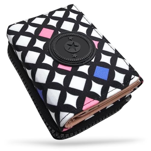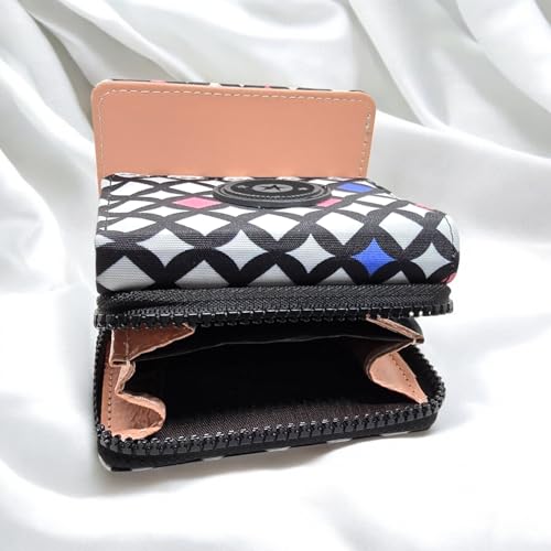 Generic - Generic Elegant Women's Multi-Colored Floral Tri-Fold Waterproof Wallet, 6 Card Slots, ID/Photo Window, Zipper Lock, Slim Size (8x4x4cm), 22g