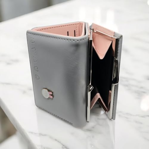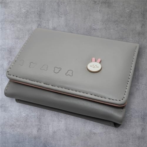 Generic - جيني محفظة انيقة صغيرة لطيفة ثلاثية الطيات للنساء، لون رمادي، تصميم زهور، مقاومة للماء، جيب بقفل قبل، نافذة لبطاقة الهوية/الصور، 7 فتحات للبطاقات، 1 جيب للنقود، 3.25 انش × 4 انش × 1.07 انش