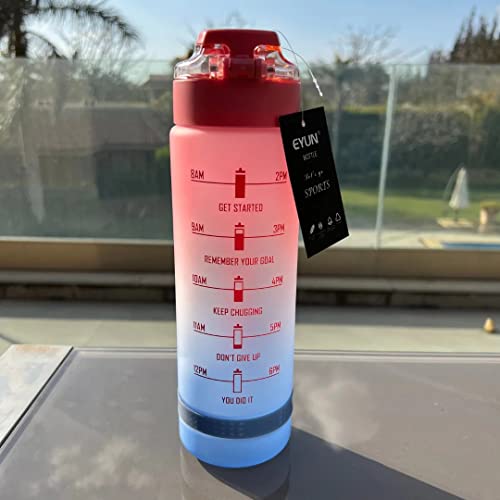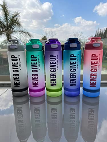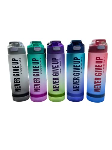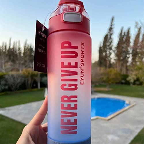 Spaceshoop - Generic EYUN Never Give Up Sports Water Bottle 1000 ml, Large Water Bottle with Motivational Time Marker, Fast Flow BPA Free Non-Toxic for Fitness, Gym and Outdoor Sports - Multi Color
