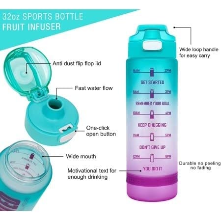 - 【MOTIVATIONAL QUOTE & TIME MARKER】- With unique inspirational quote and time markers on it,this water bottle is great for measuring your daily intake of water,reminding you stay hydrated and drink enough water throughout the day.A must have for any fitness goals including weight loss,appetite control and overall health.