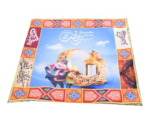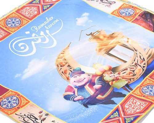 Generic - Generic Fabric Square Shaped Large Zipper Pillowcase Printed With Cartoon Characters And Crescent Moon Design Perfect For Ramadan Home Decor Set Of 2 Pieces - Multi Color
