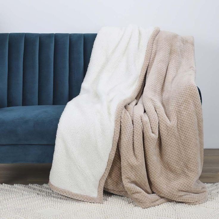 - تصميم بوجهين: يتميز بفرو صناعي فاخر على جانب وصوف شيربا مريح على الجانب الآخر، مما يوفر مظهرين أنيقين بدرجات البيج والكريمي لديكور منزلي متنوع.