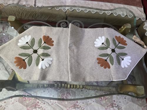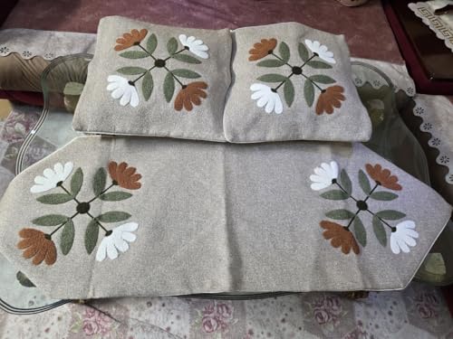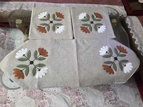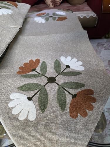 Generic - Generic Floral Embroidered Linen Table Runner and Cushion Set, Natural Beige with White and Rust Flowers, 90x45cm Runner with 2 Matching 45x45cm Cushions,set of 3 (beige with green) .sr