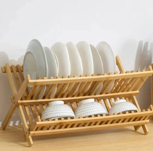 Generic - Generic Foldable Wooden Dish Rack with 2 Tiers, 34cm x 34cm, Natural Finish.IR