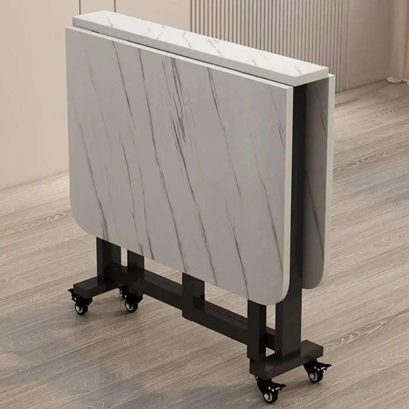 Generic - Generic Folding Dining Table with Wheels, Marble Melamine Surface, Electrostatic Coated Iron Frame, 120x80x75cm, Black (White)