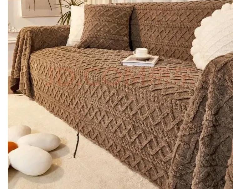 Generic - Generic Fur Corner Sofa Cover Set, 270 x 210 cm, 2-Piece Heavy Fabric, (cafe) .sr