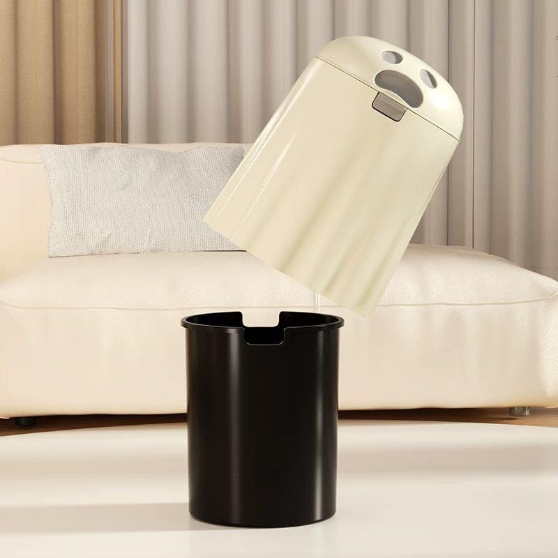 - CONSTRUCTION: Two-piece design featuring a main basket and a ghost-shaped cover that securely holds trash bags in place
