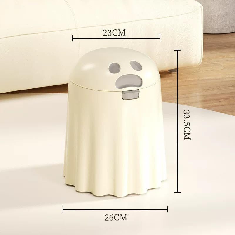 Generic - Generic Ghost Design Decorative Trash Bin, 19 cm Inner Diameter, with Cover, Cream White