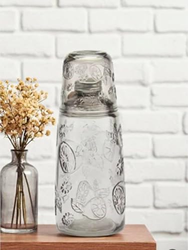 - VERSATILE SERVING SET: Glass bottle with matching cup lid creates a practical 2-in-1 design perfect for serving water, fresh juices, or milk at the dining table or bedside