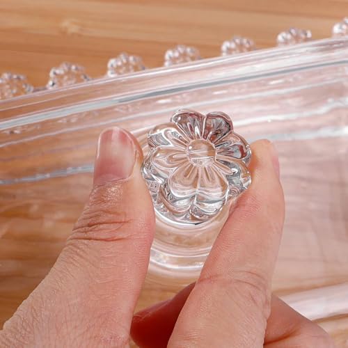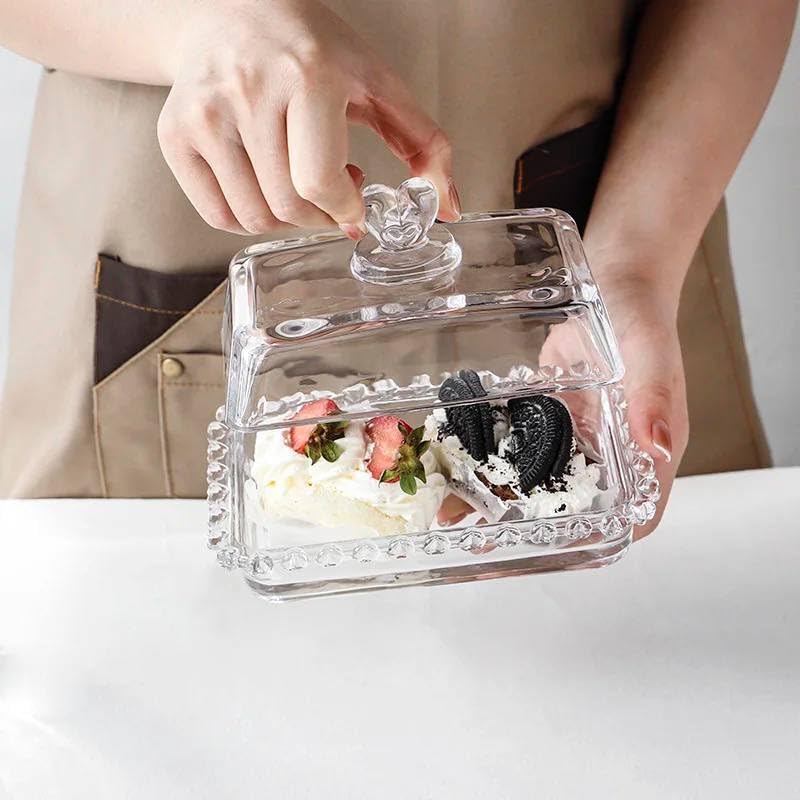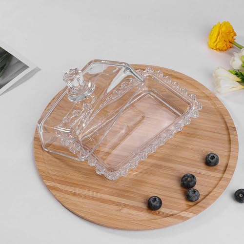 Generic - جيني طبق زبدة زجاجي مع غطاء، وعاء تقديم بحواف مزخرفة بالخرز، امن للاستخدام في الميكروويف