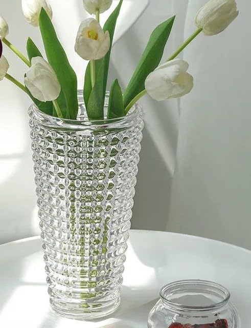 Generic - جيني مزهرية زجاجية كريستالية، حاوية زهور مزخرفة شفافة، مقاس M، ديكور منزلي عصري .كيو يو