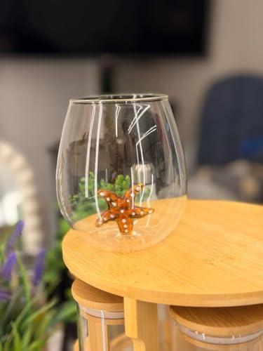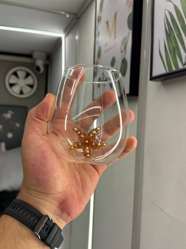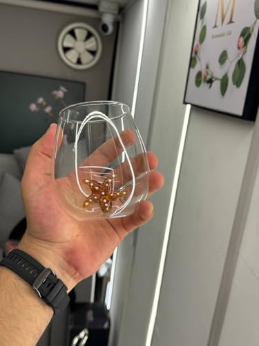 - تصميم فاخر: كوب زجاج شفاف أنيق بقاعدة مزينة بنجم البحر الكهرماني، مما يجعله مثاليًا لكل من الأماكن غير الرسمية والرسمية.