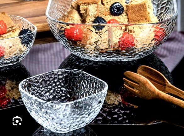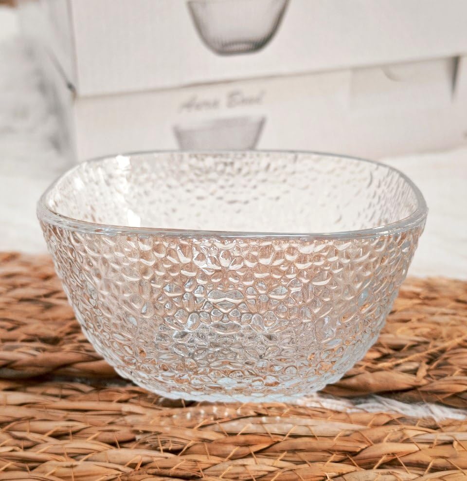 - Premium Glass Construction: Set of 6 elegant dessert bowls crafted from high-quality glass with a distinctive textured design that adds visual appeal to any table setting