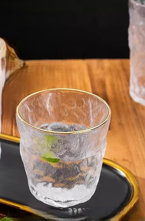 Generic - جيني طقم اكواب شرب زجاجية، شفاف بحافة ذهبية، سعة 300 مل، 6 قطع، سوه