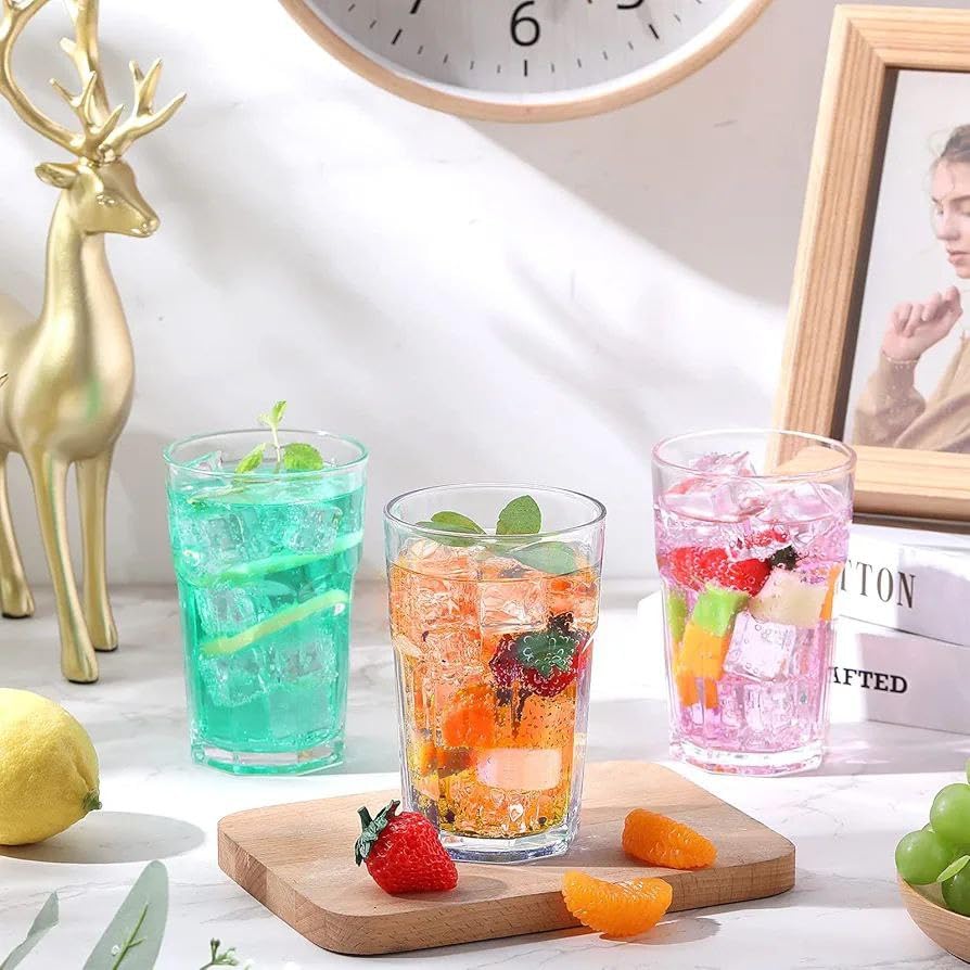 • السعة: يحمل كل كوب زجاجي 360 مل من مشروباتك المفضلة، وهو مثالي لتقديم الماء أو العصير أو الكوكتيلات أو أي مشروبات باردة