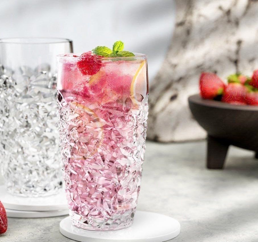 - ELEGANT DESIGN: Textured glass drinkware featuring a beautiful crystal pattern that adds a sophisticated touch to any table setting or occasion