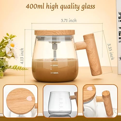 Generic - كوب زجاجي كهربائي ذاتي الخلط بسعة 350 مل، شفاف، مج خلاط مشروبات