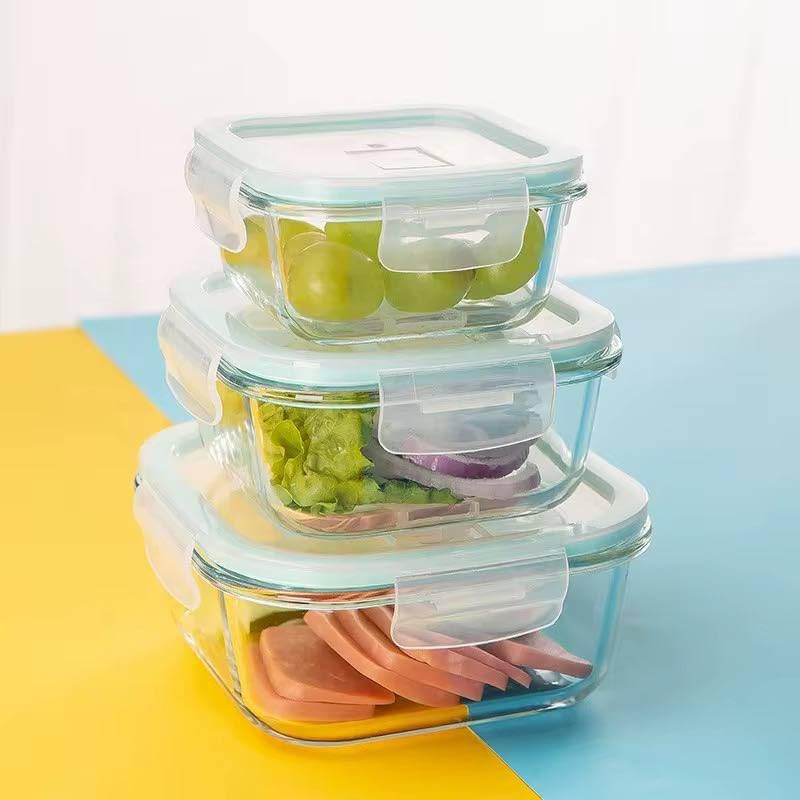 Generic - جيني علب تخزين طعام زجاجية مع اغطية محكمة الغلق، مجموعة من 3 قطع، مربعة