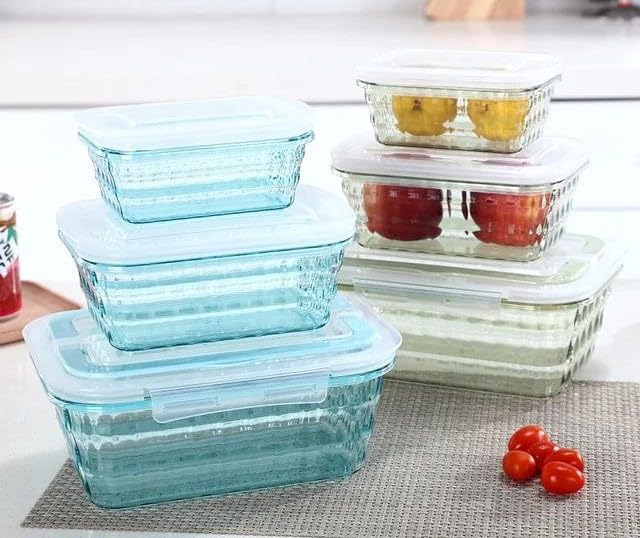 Generic - Generic Glass Food Storage Containers with Lids, 3-Piece Set, Shock-Resistant Acrylic, Blue and Clear .ex