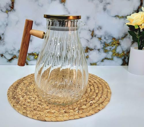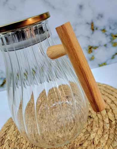 Generic - Generic Glass Jug with Metal Lid, 1.8L Capacity, Wooden Handle, Ribbed Design .mk