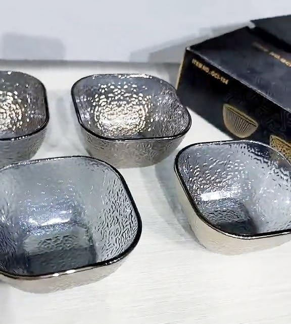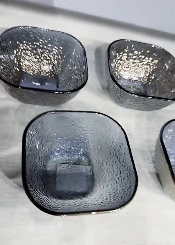 - ELEGANT DESIGN: Square-shaped smoke grey glass serving bowls with a textured, hammered finish that adds sophistication to any table setting