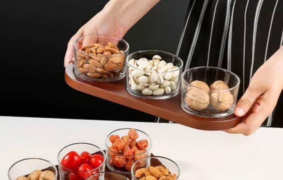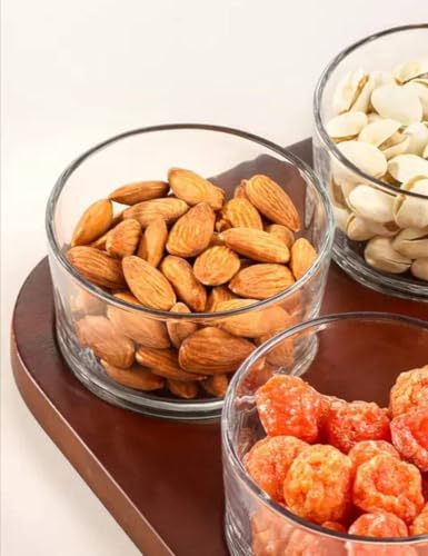 - Three-Compartment Design: Features 3 separate glass compartments perfect for organising and serving different snacks, nuts, candies, dried fruits, or appetisers simultaneously