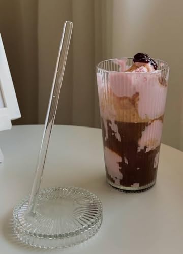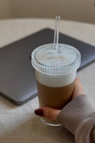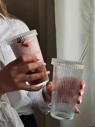 Generic - جيني طقم اكواب زجاجية مع شفاطات قابلة لاعادة الاستخدام، اكواب شرب كريستال شفافة مع اغطية، مجموعة من قطعة واحدة، A2