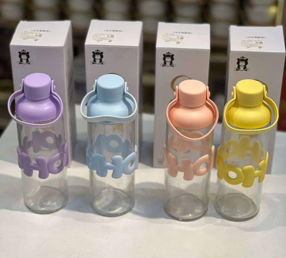 Generic - Generic Glass Water Bottle with Silicone Grip, Clear Transparent Container with Protective Lid, multicolor .em