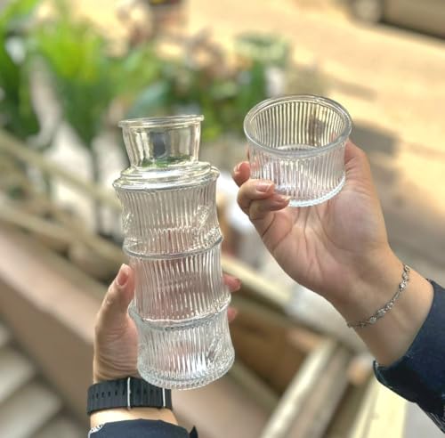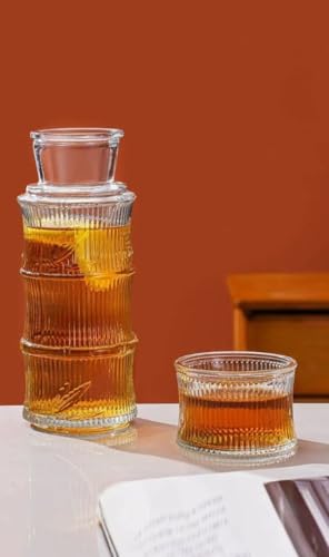 - ELEGANT DESIGN: Clear glass carafe features a distinctive ribbed texture pattern that adds visual appeal to any table setting or bedside arrangement