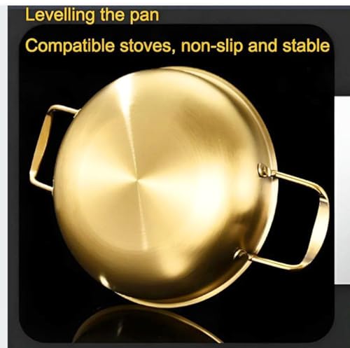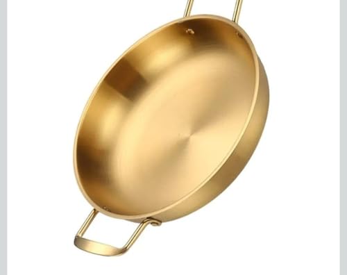 Generic - طاسة قلي ذهبية من الفولاذ المقاوم للصدأ بمقبضين 24 سم مقاومة للصدأ والحروق وغير قابلة للانزلاق