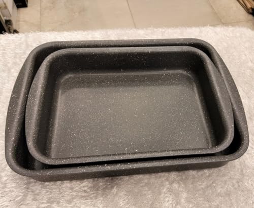 Generic - Generic Granite Baking Dish Set, 30 cm and 35 cm Rectangular Pans, 2-Piece. (Grey)