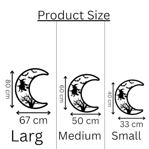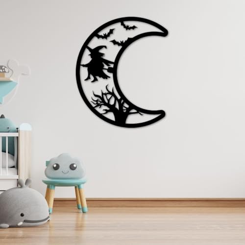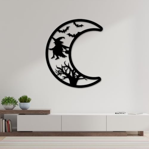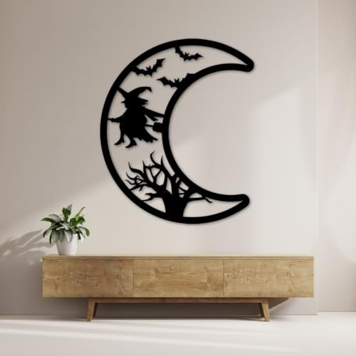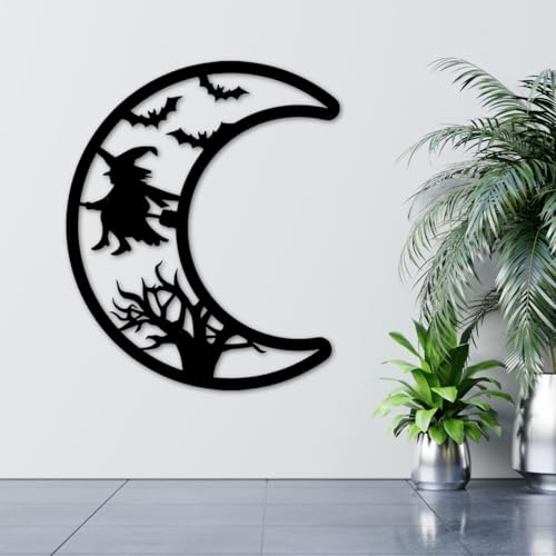 Generic - جيني لوحة فنية جدارية معدنية للهالوين، قمر اسود مع تصميم ساحرة، ديكور للتعليق على الحائط مع الاجهزة، مقاس L 67 سم، نمط قوطي (مقاس M)