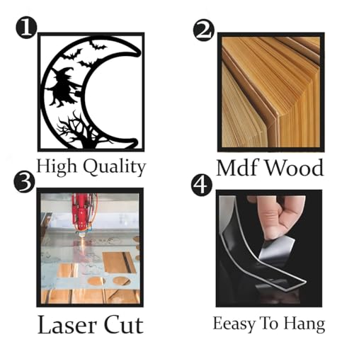 - ميزة التصميم: ديكور حائط مذهل للهالوين يتميز بصورة ساحرة تطفو على قمر هلال مع خفافيش طائرة، مثالية للديكور الموسمي