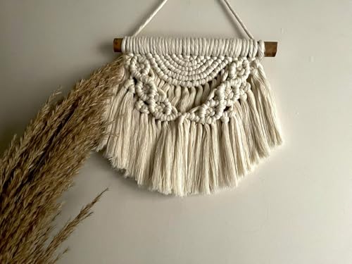 Generic - مكرمية مصنوعة يدويًا للتعليق على الحائط، 25 سم، ديكور منزلي بوهو، نسيج قطني منسوج، كريمي