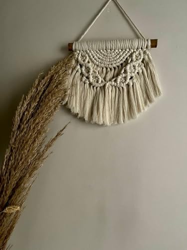 - الأبعاد: تعليقة مكرمية صغيرة بعرض 25 سم، مثالية للمساحات الجدارية الصغيرة والمتوسطة