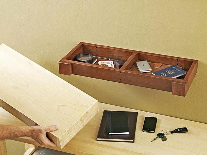 Homz - Generic Hanging Shelf with Hidden Drawer, Polished, Wood, Modern Style, 1 Shelf, 50x30x50 cm, 4 kg, 40 kg - 80 kg Weight Capacity, Wall Mount, for Adult