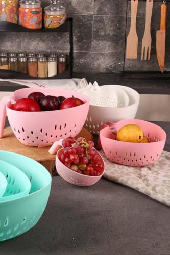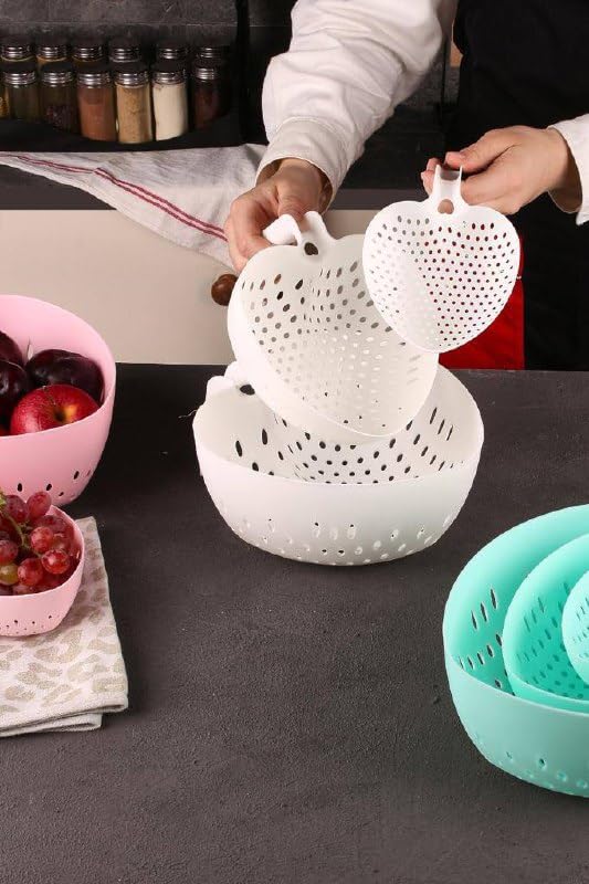 Generic - Generic Heart-Shaped Plastic Colander Set, 3 Sizes, White, Kitchen Strainer Bowls .soh