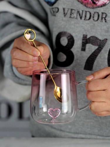 Generic - Generic Heat-Resistant Glass Mug with Heart Shape, Pink, 360ml Capacity, .ma