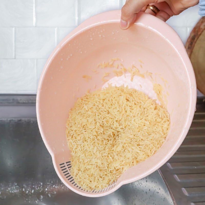 - VERSATILE KITCHEN TOOL: Large-sized rice and vegetable strainer designed for efficient washing and draining of rice, grains, vegetables, fruits, and pasta with optimal water flow